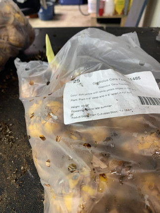 Gladiolus Corms: Once growth is seen on the corm, it must be planted. Don't break the growing tip! That will destroy the corm's ability to flower.